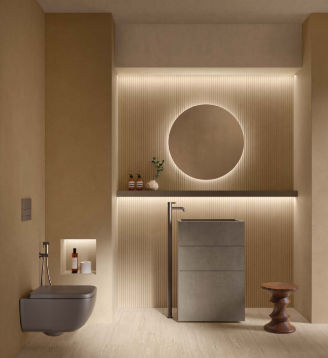 De subtiele structuur en verfijnde afwerking zorgen voor een moderne en rustige basis met een natuurlijke uitstraling. Dit maakt de tegel geschikt voor zowel minimalistische als warme interieurs.