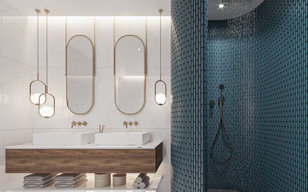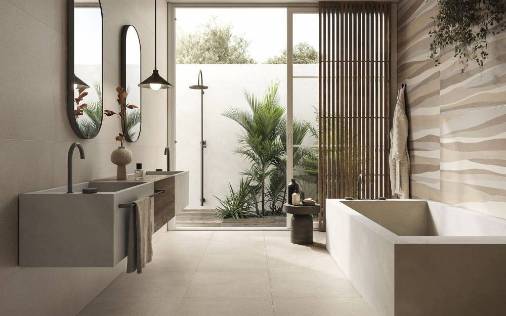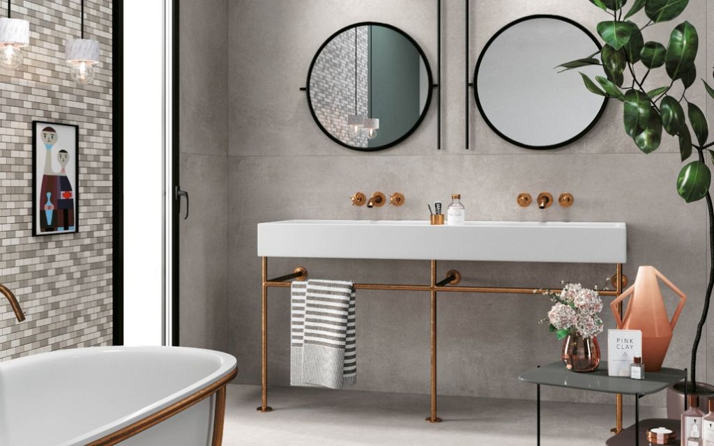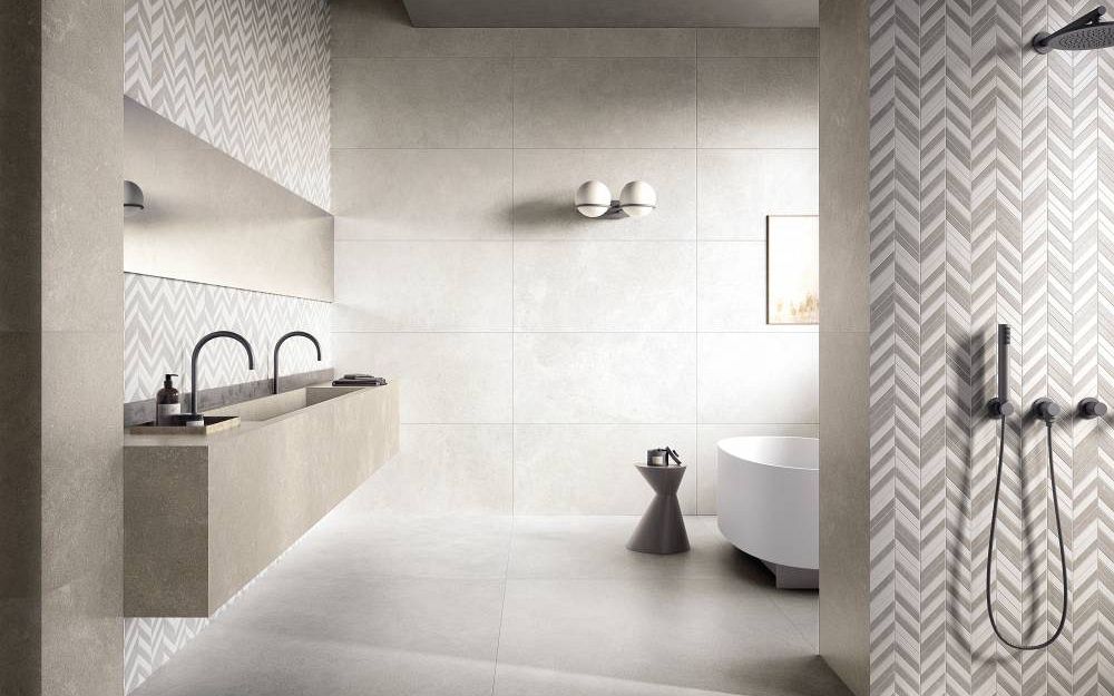 Grote tegelformaten laten een badkamer ruimer ogen.